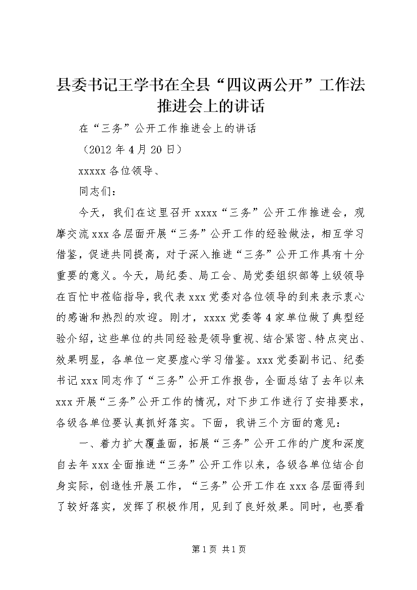 县委书记王学书在全县“四议两公开”工作法推进会上的讲话 (2)