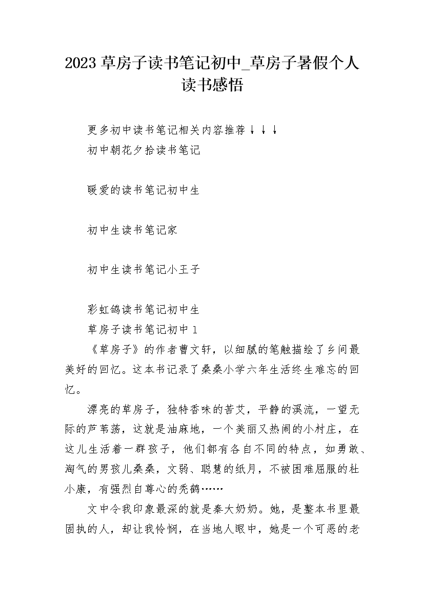 2023草房子读书笔记初中_草房子暑假个人读书感悟