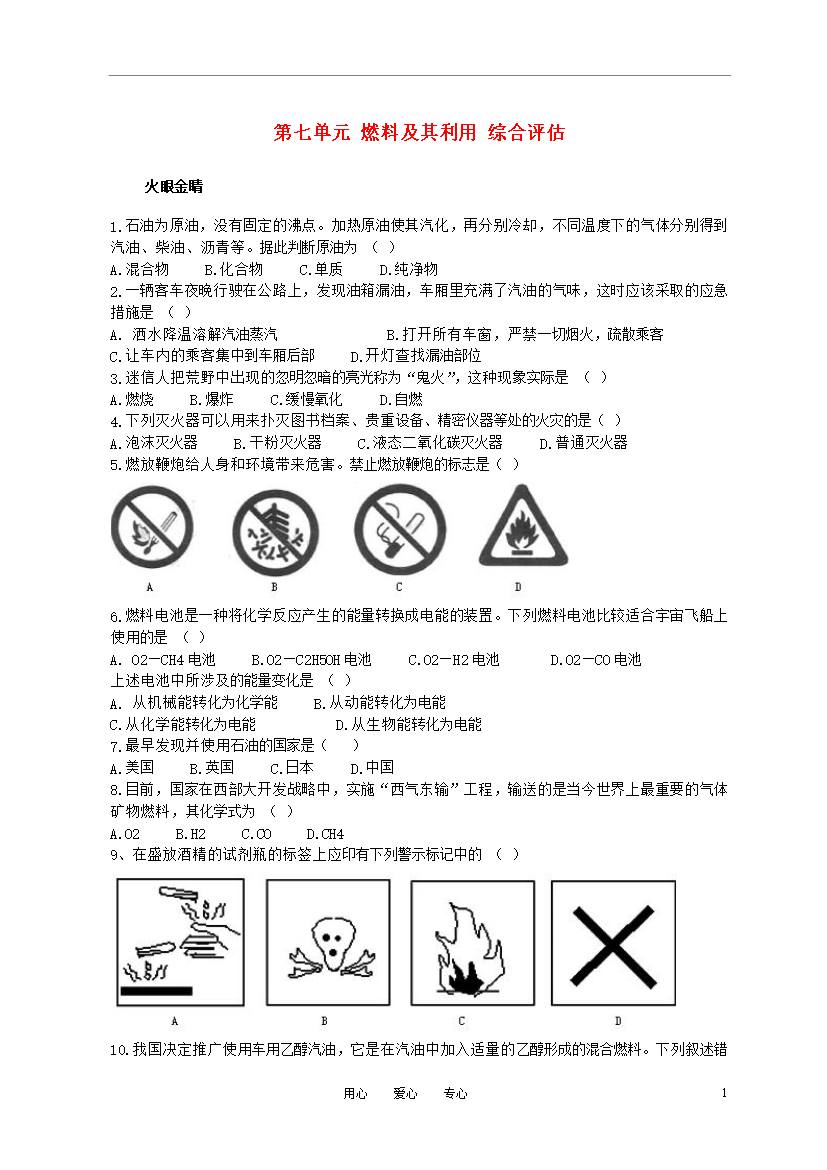 试题-全国-2011_九年级化学 第七单元 燃料及其利用 综合评估(无答案)人教新课标版
