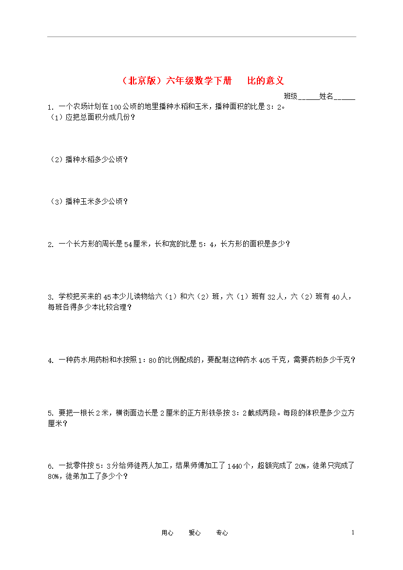 试题-北京-2012_六年级数学下册 比的意义(二)练习 北京版