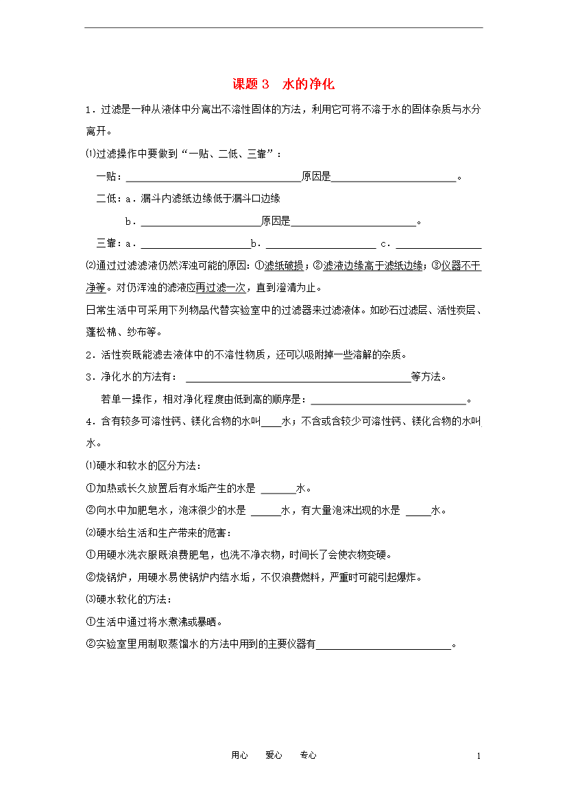 试题-全国-2011_九年级化学 第三单元 课题3 水的净化同步练习(无答案)人教新课标版