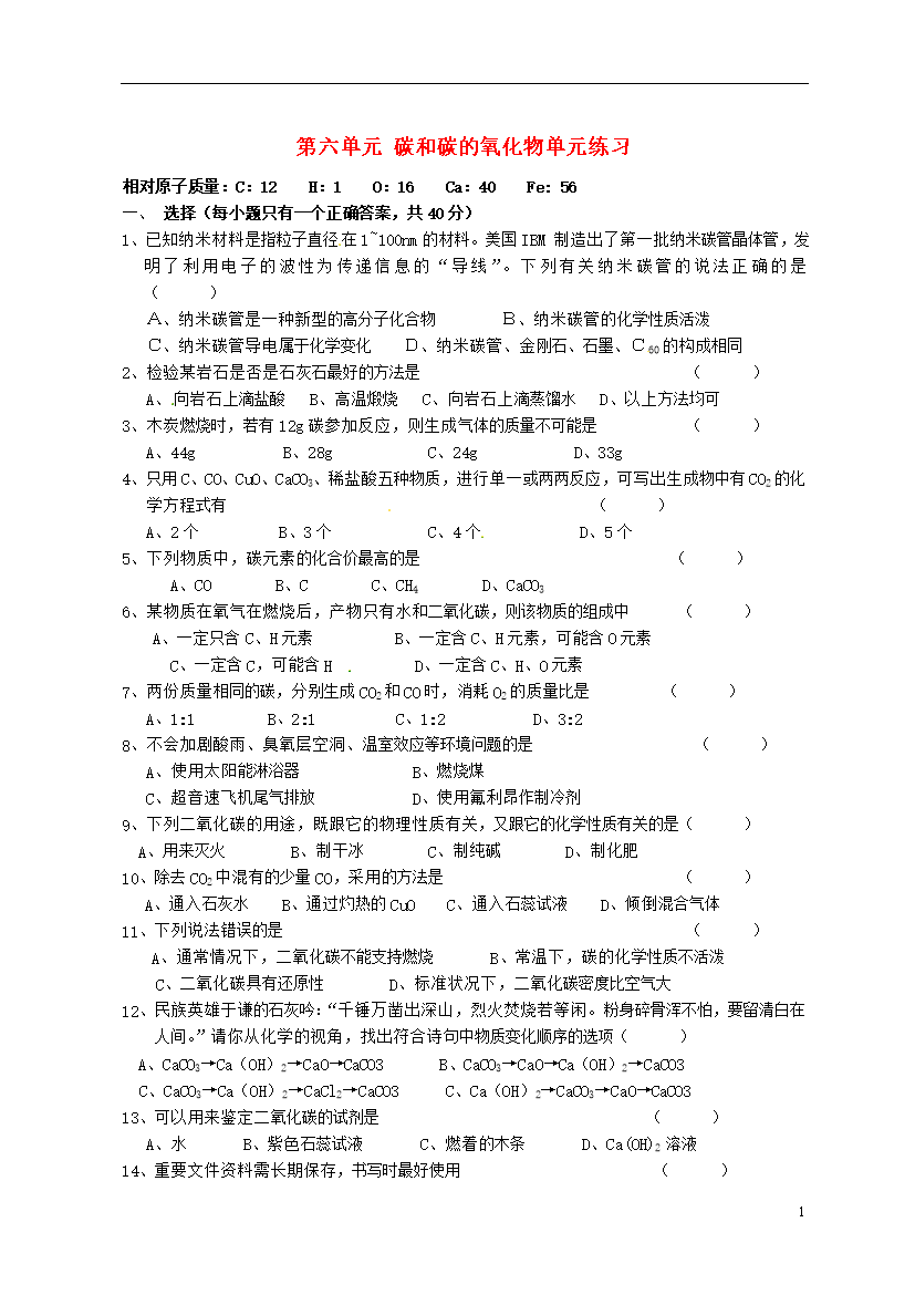 试题-全国-2013_九年级化学上册 第六单元 碳和碳的氧化物单元练习4 (新版)新人教版