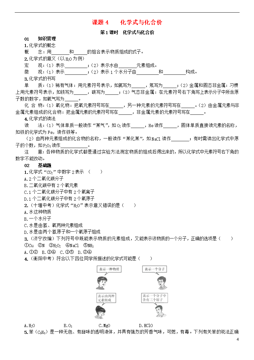 试题-全国-2017_2017年秋九年级化学上册 第四单元 自然界的水 课题4 化学式与化合价练习 (新版)新人教版