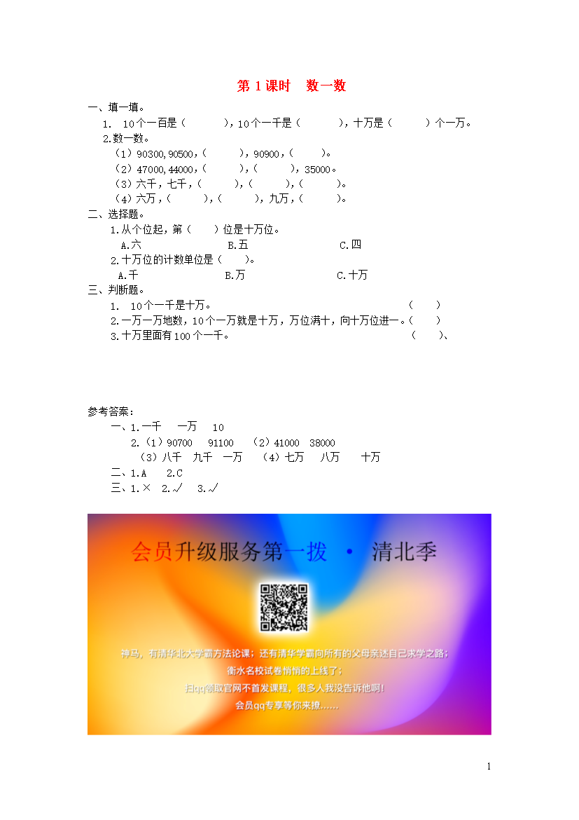 试题-全国-2019_四年级数学上册 第一单元 认识更大的数 第1课时 数一数课堂作业设计 北师大版