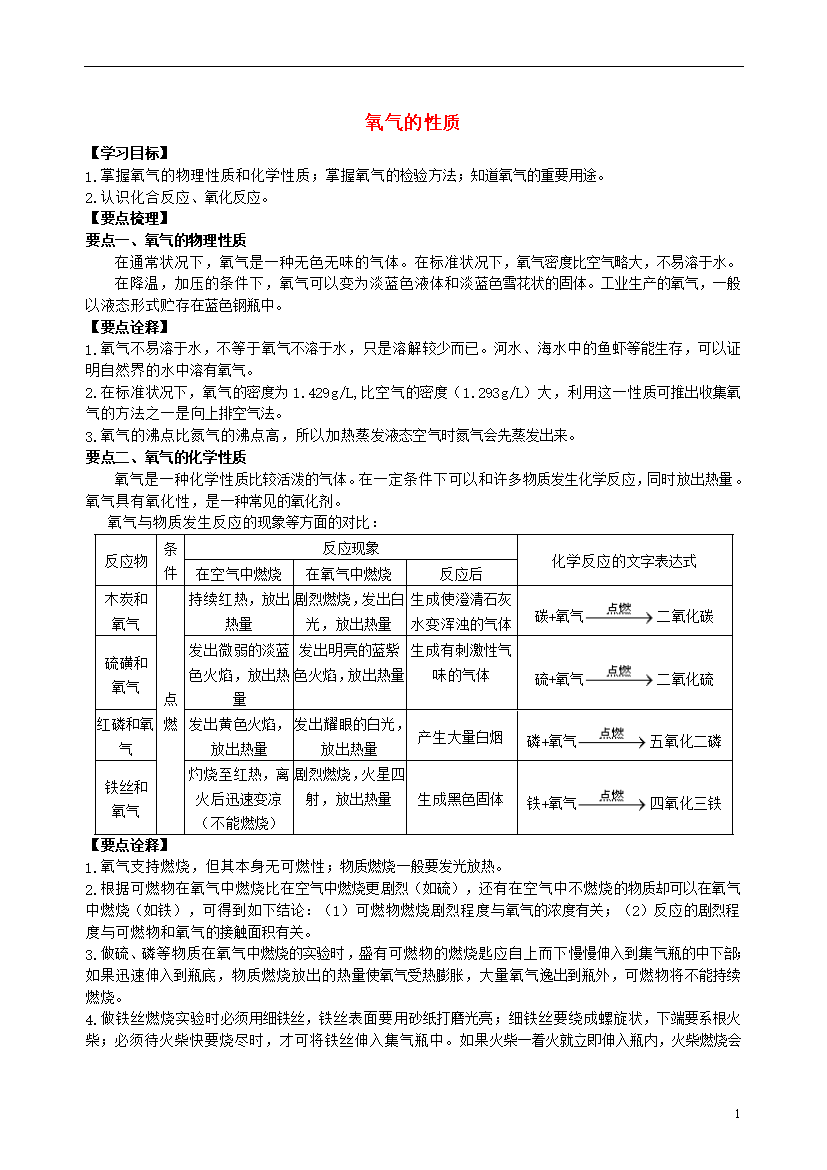 试题-全国-2018_2018学年度九年级化学上册《氧气的性质》知识点归纳+例题导析(含解析)(新版)新人教版