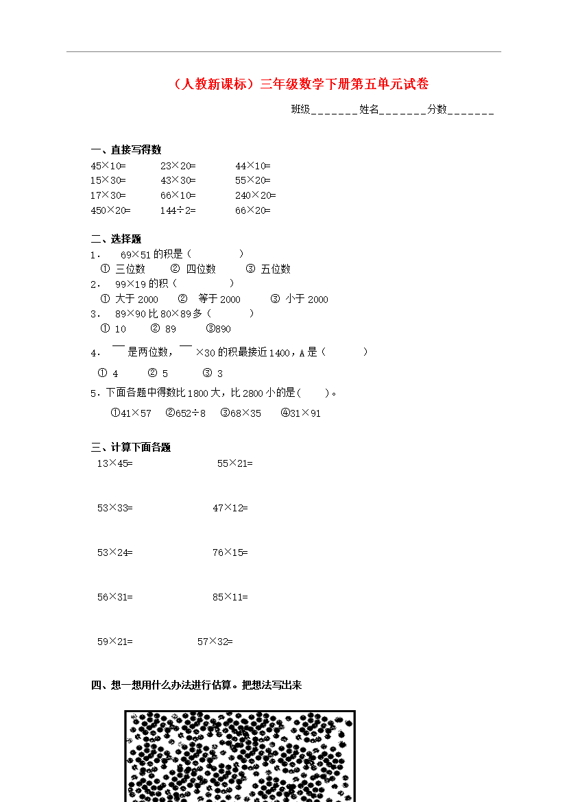 试题-全国-2011_三年级数学下册 第五单元试卷(无答案) 人教新课标版