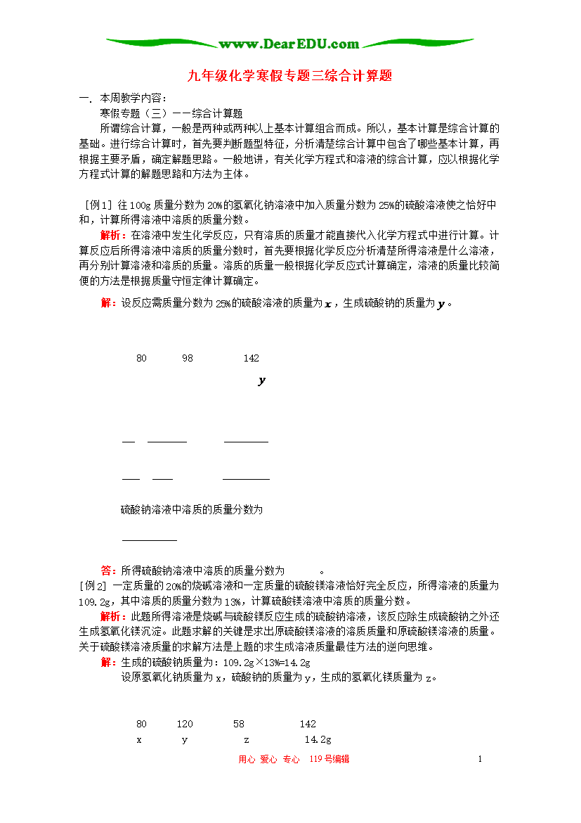 试题-全国-2006_九年级化学寒假专题三综合计算题 天津版