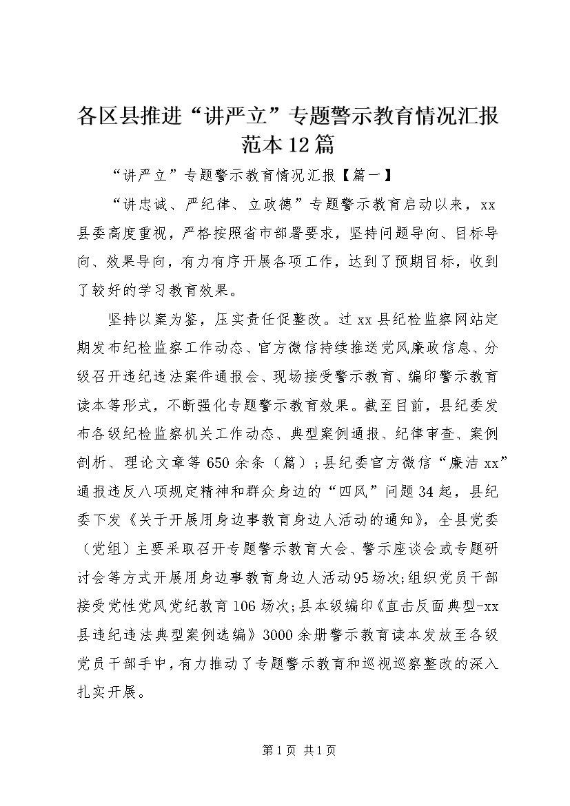 各区县推进“讲严立”专题警示教育情况汇报范本12篇
