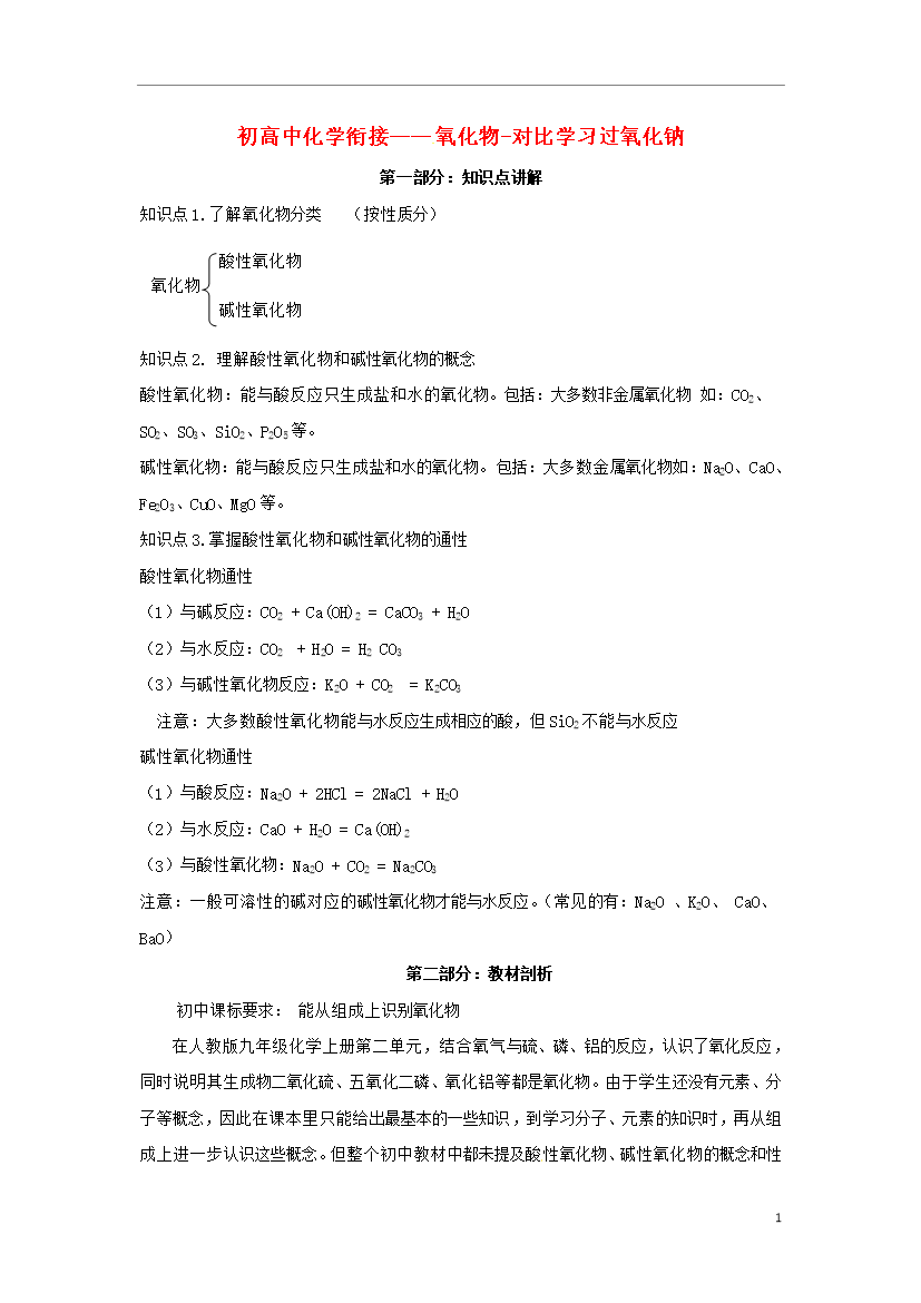 试题-全国-2013_2014年初中化学 初高中衔接专题知识讲座 氧化物-对比学习过氧化钠 新人教版