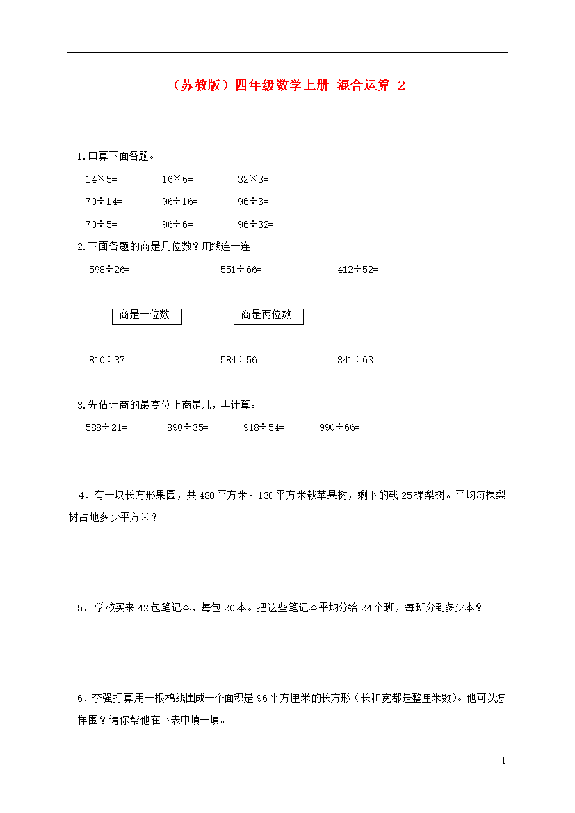 试题-全国-2011_四年级数学上册 混合运算(2)练习 苏教版