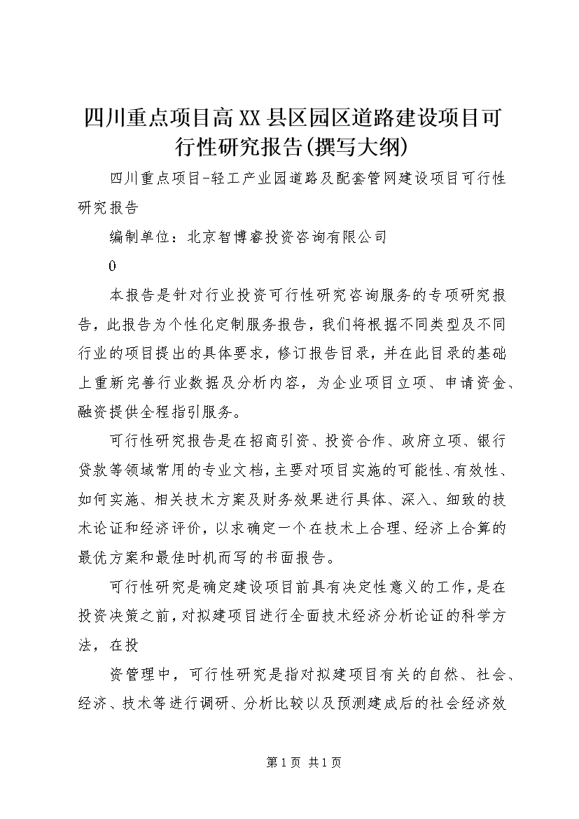 四川重点项目高XX县区园区道路建设项目可行性研究报告(撰写大纲) (3)