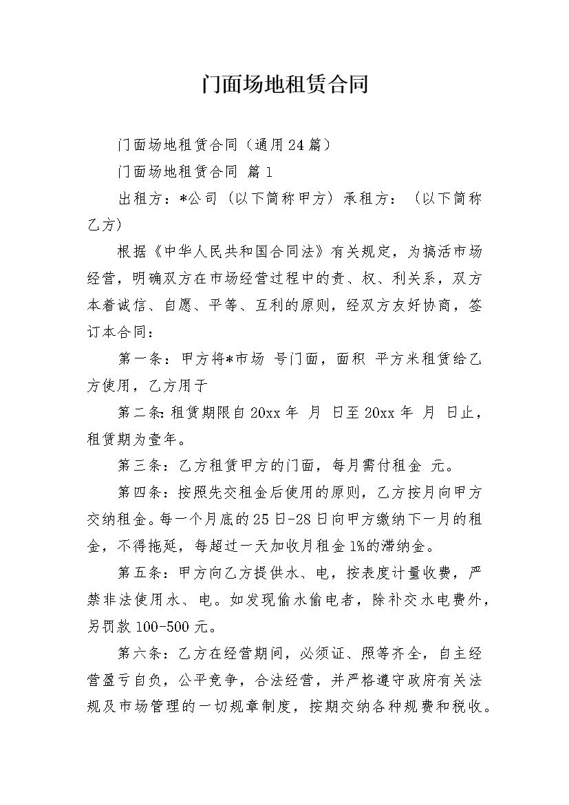 门面场地租赁合同