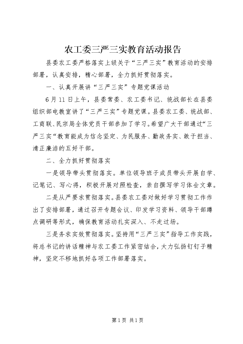 农工委三严三实教育活动报告