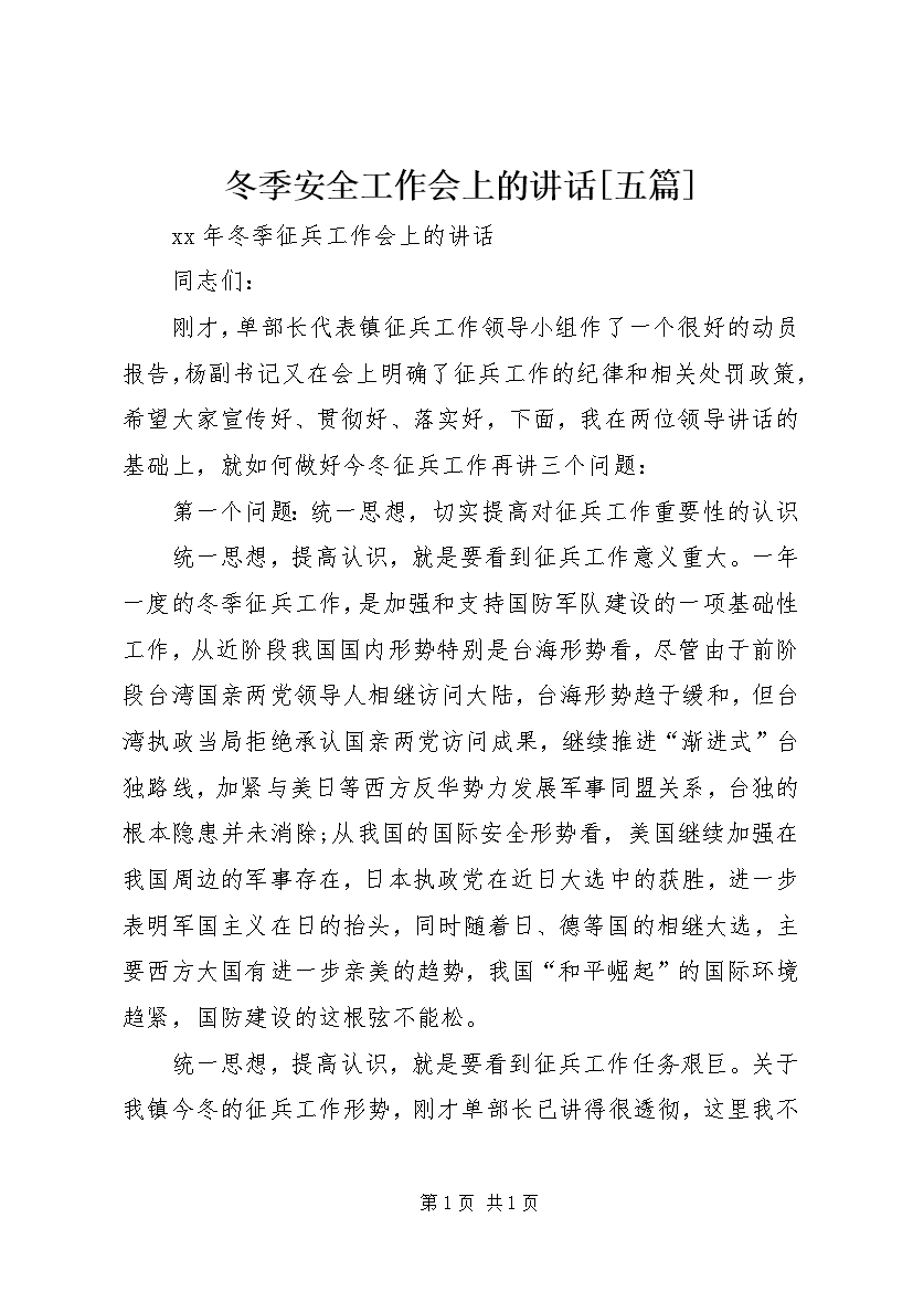 冬季安全工作会上的讲话[五篇] (3)
