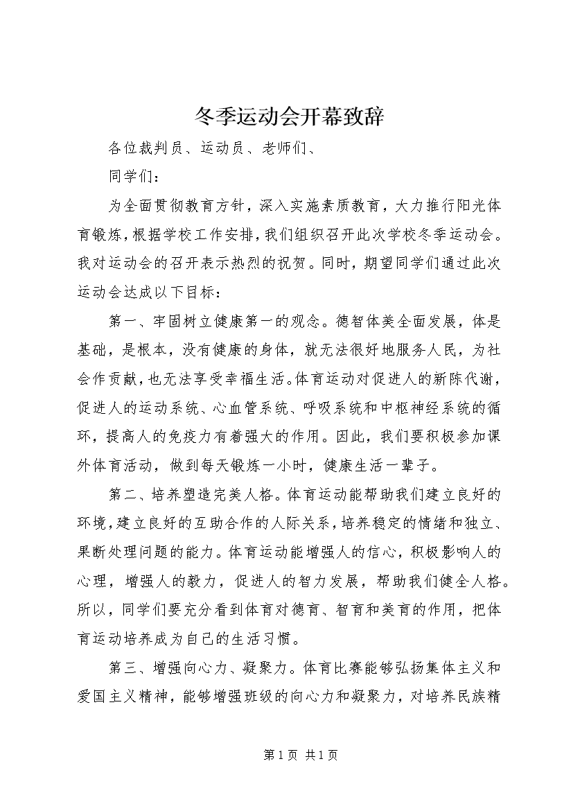 冬季运动会开幕致辞 (3)