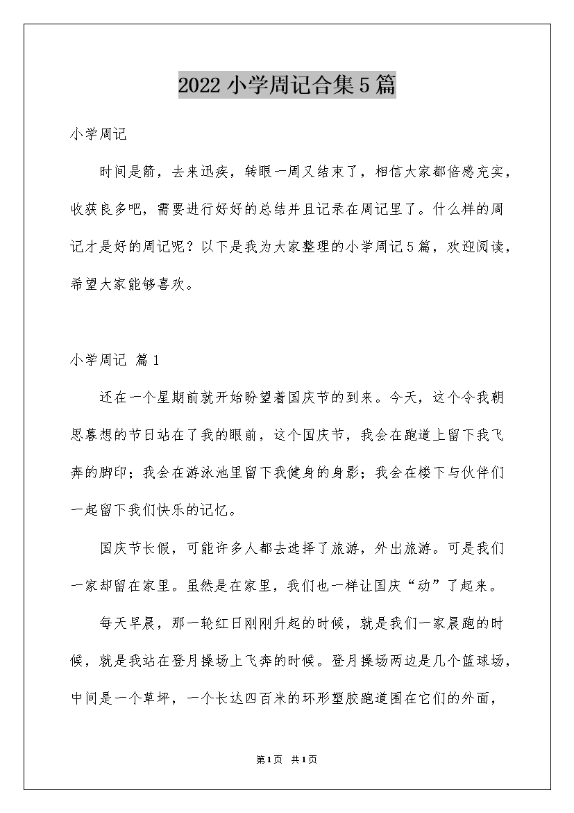 2022小学周记合集5篇