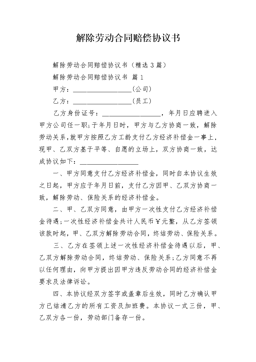 解除劳动合同赔偿协议书
