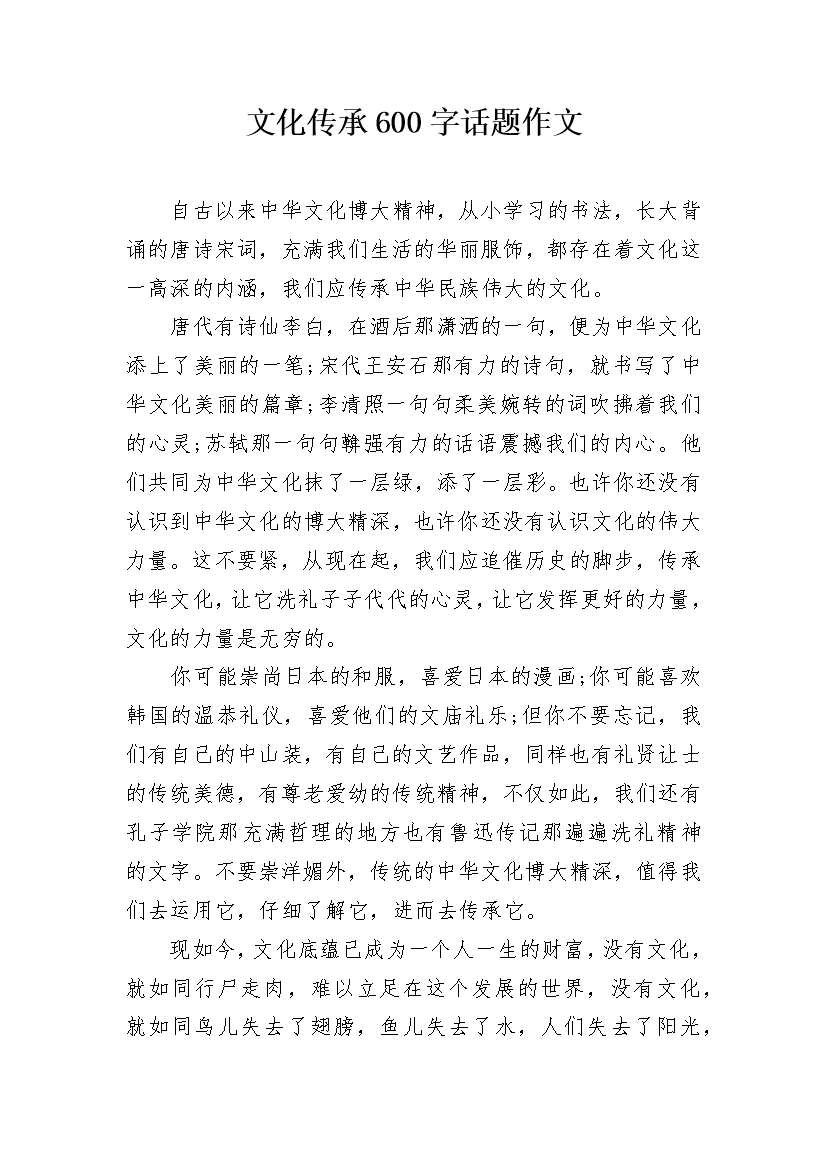 文化传承600字话题作文