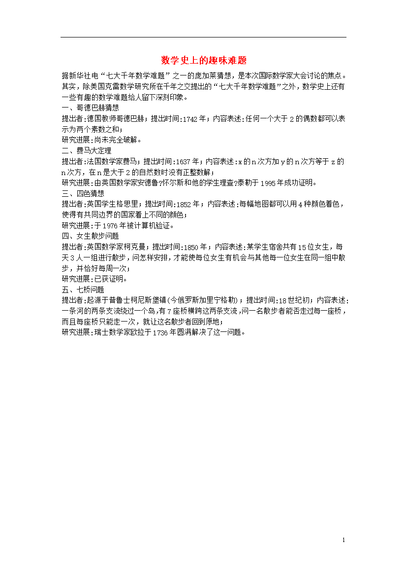 素材-全国-2020_小学数学 数学故事 数学史上的趣味难题