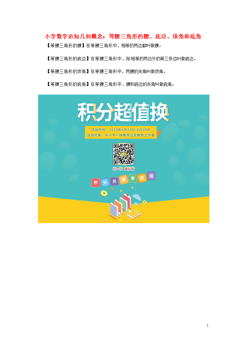 素材-全国-2019_小学数学必知几何概念 等腰三角形的腰、底边、顶角和底角素材