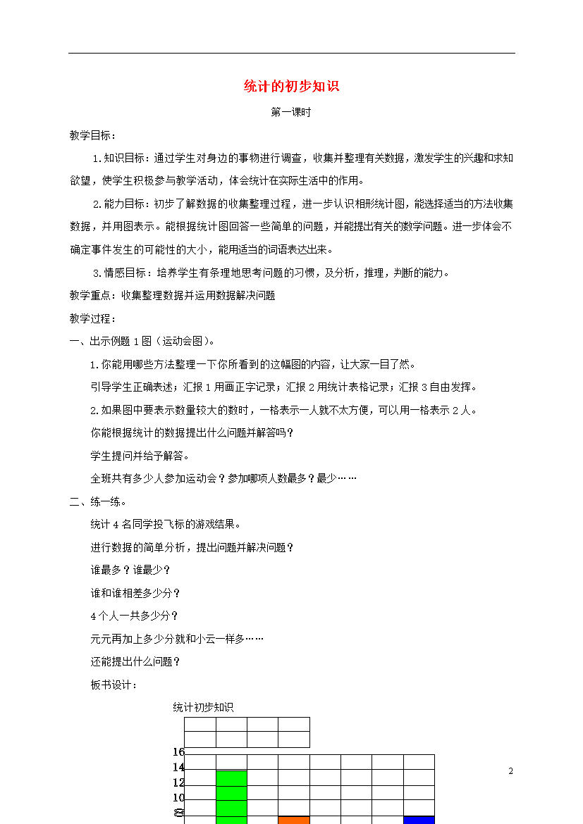 教案-北京-2012_二年级数学上册 统计的初步知识 1教案 北京版