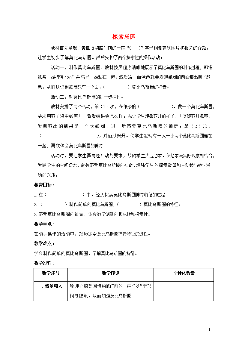 教案-全国-2015_五年级数学上册 第九单元《探索乐园》教案 冀教版