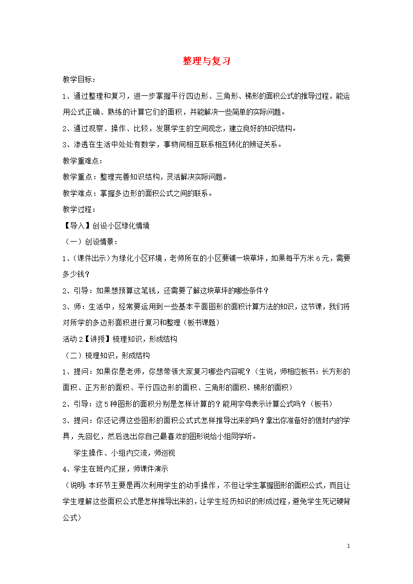 教案-全国-2019_五年级数学上册 六《多边形面积》6