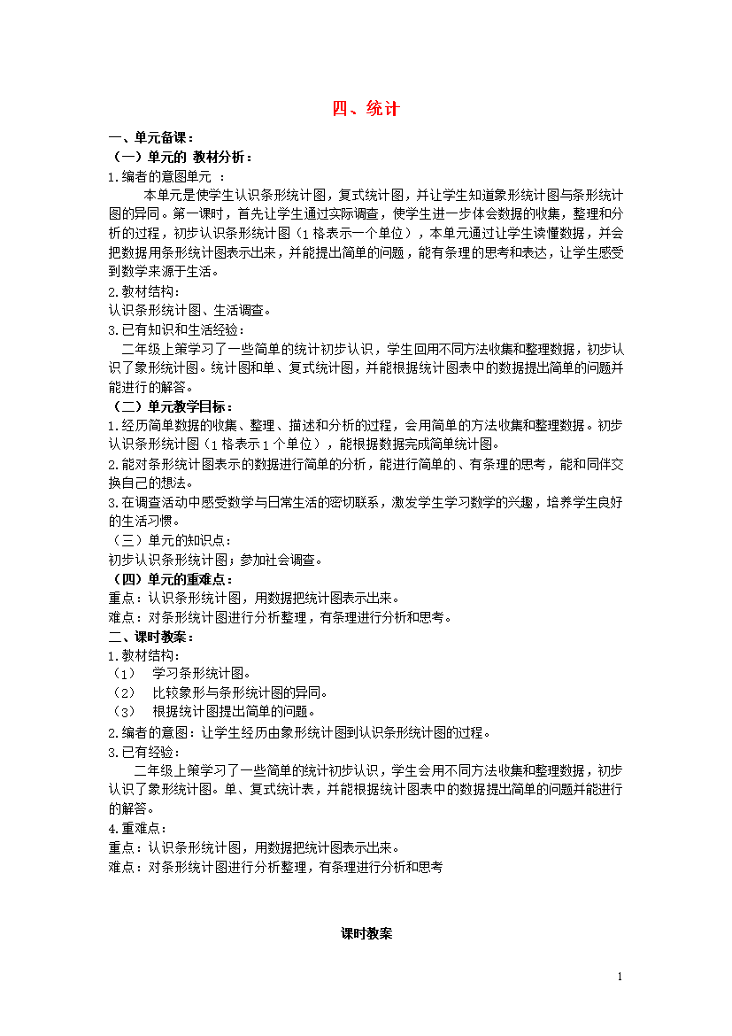 教案-全国-2019_二年级数学下册 四 统计教案2 冀教版