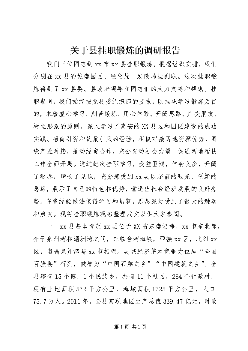 关于县挂职锻炼的调研报告
