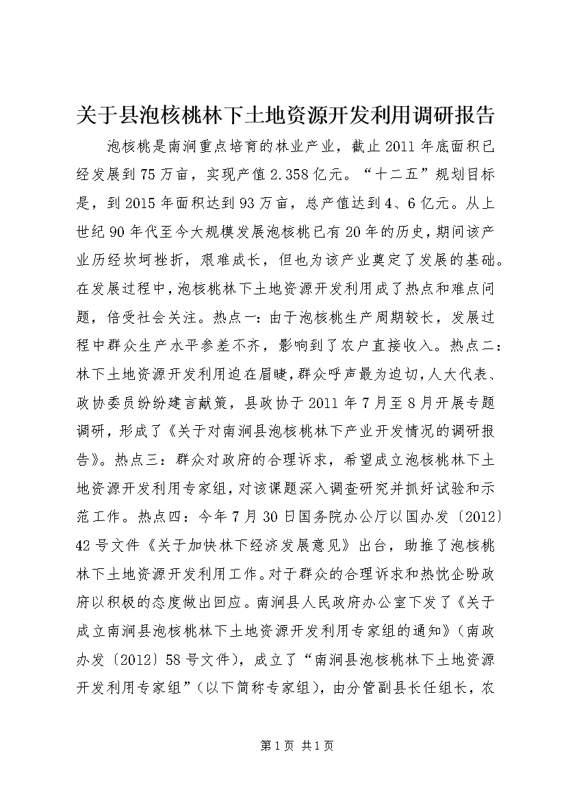 关于县泡核桃林下土地资源开发利用调研报告
