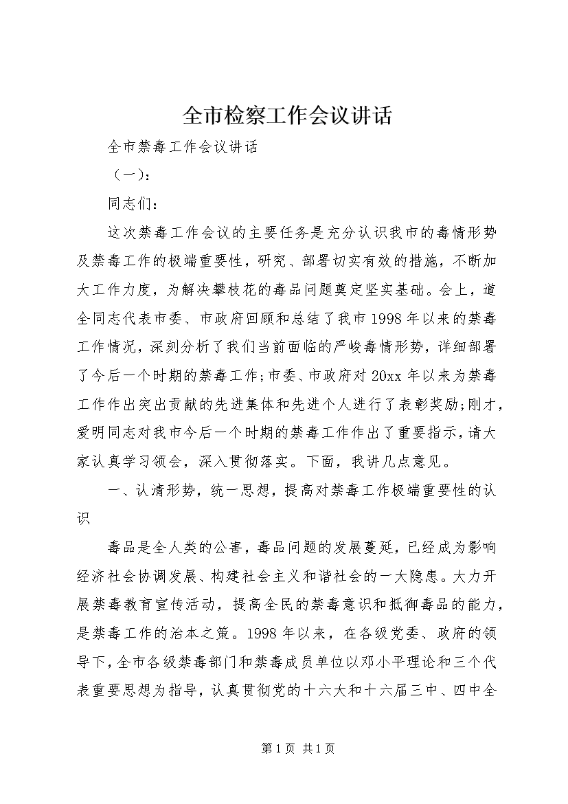 全市检察工作会议讲话 (2)
