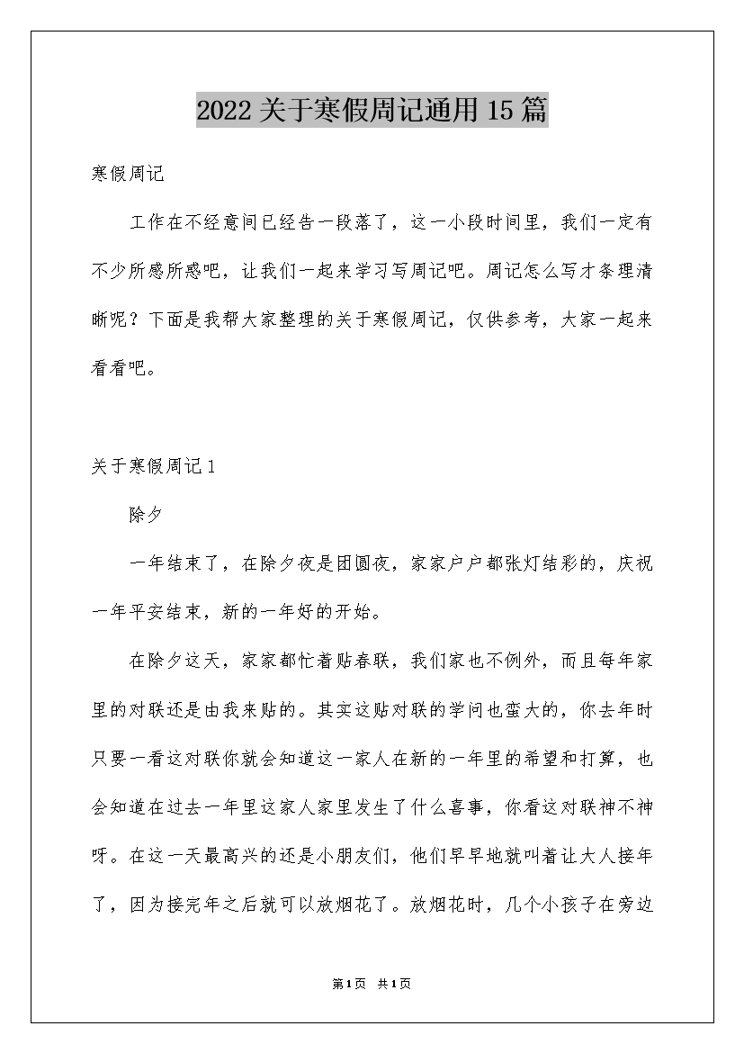 2022关于寒假周记通用15篇