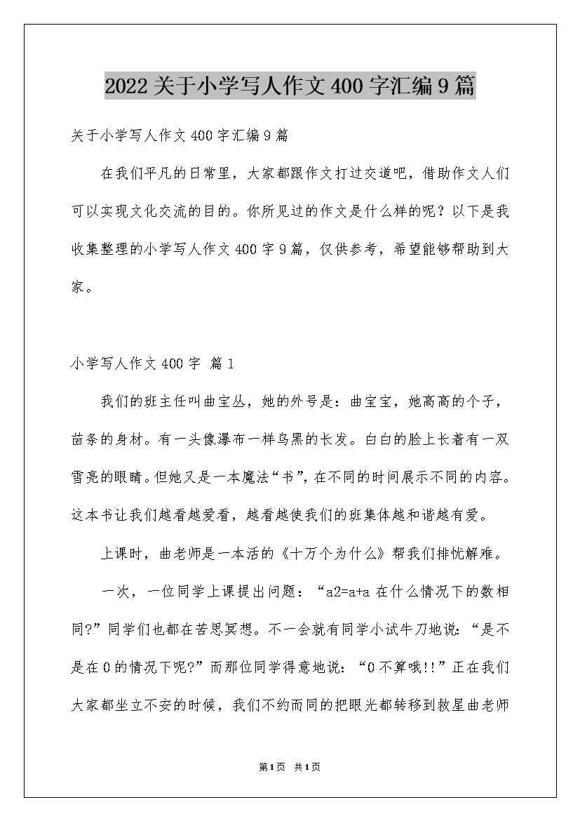 2022关于小学写人作文400字汇编9篇