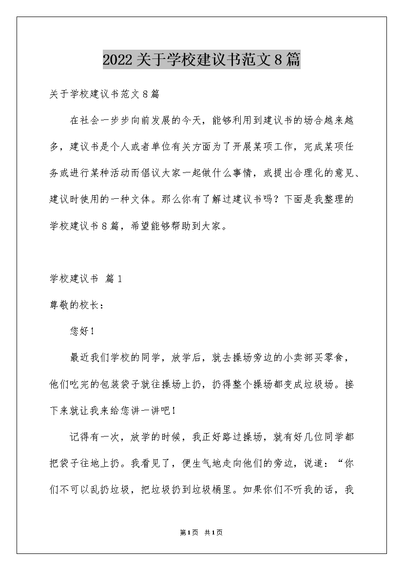 2022关于学校建议书范文8篇