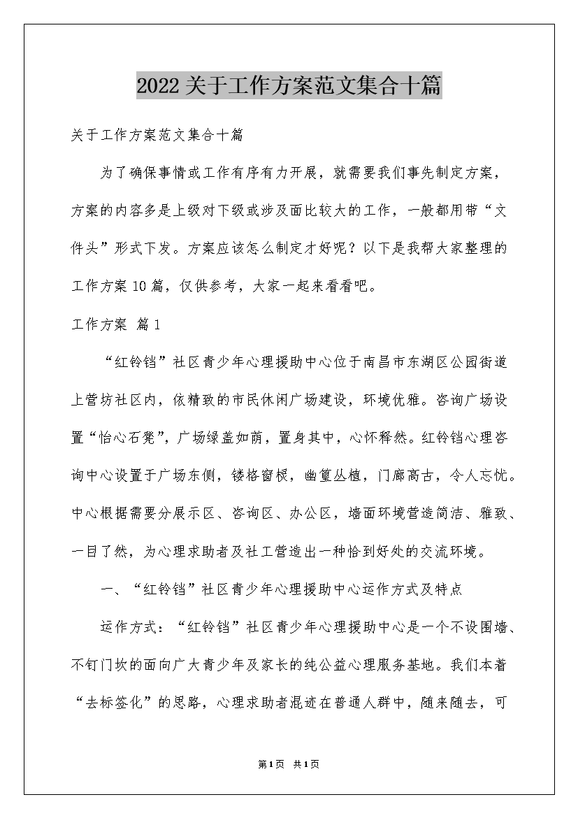 2022关于工作方案范文集合十篇