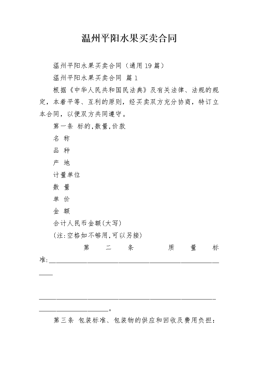温州平阳水果买卖合同