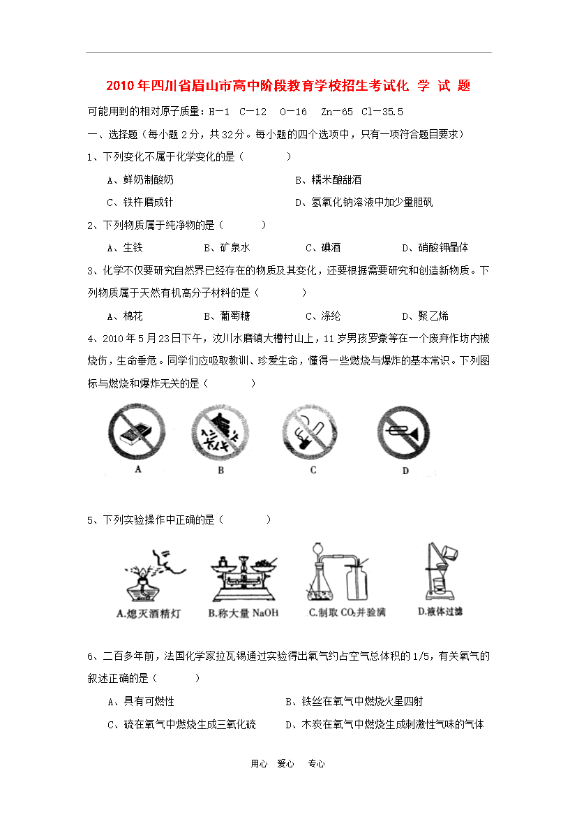 试题-四川-2010_四川省眉山市2010年中考真题化学试题
