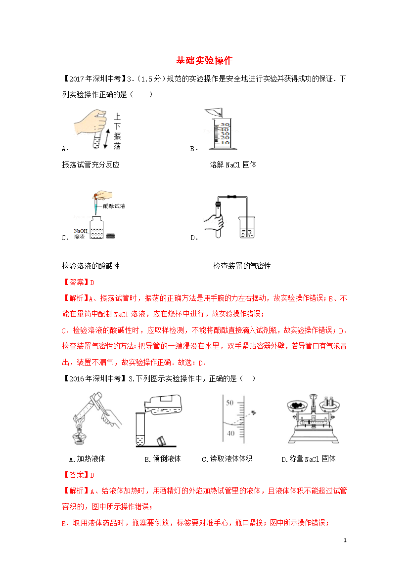 试题-广东-2018_广东省深圳市中考化学试题分类汇编 基础实验操作(含2008-2017十年中考试题)