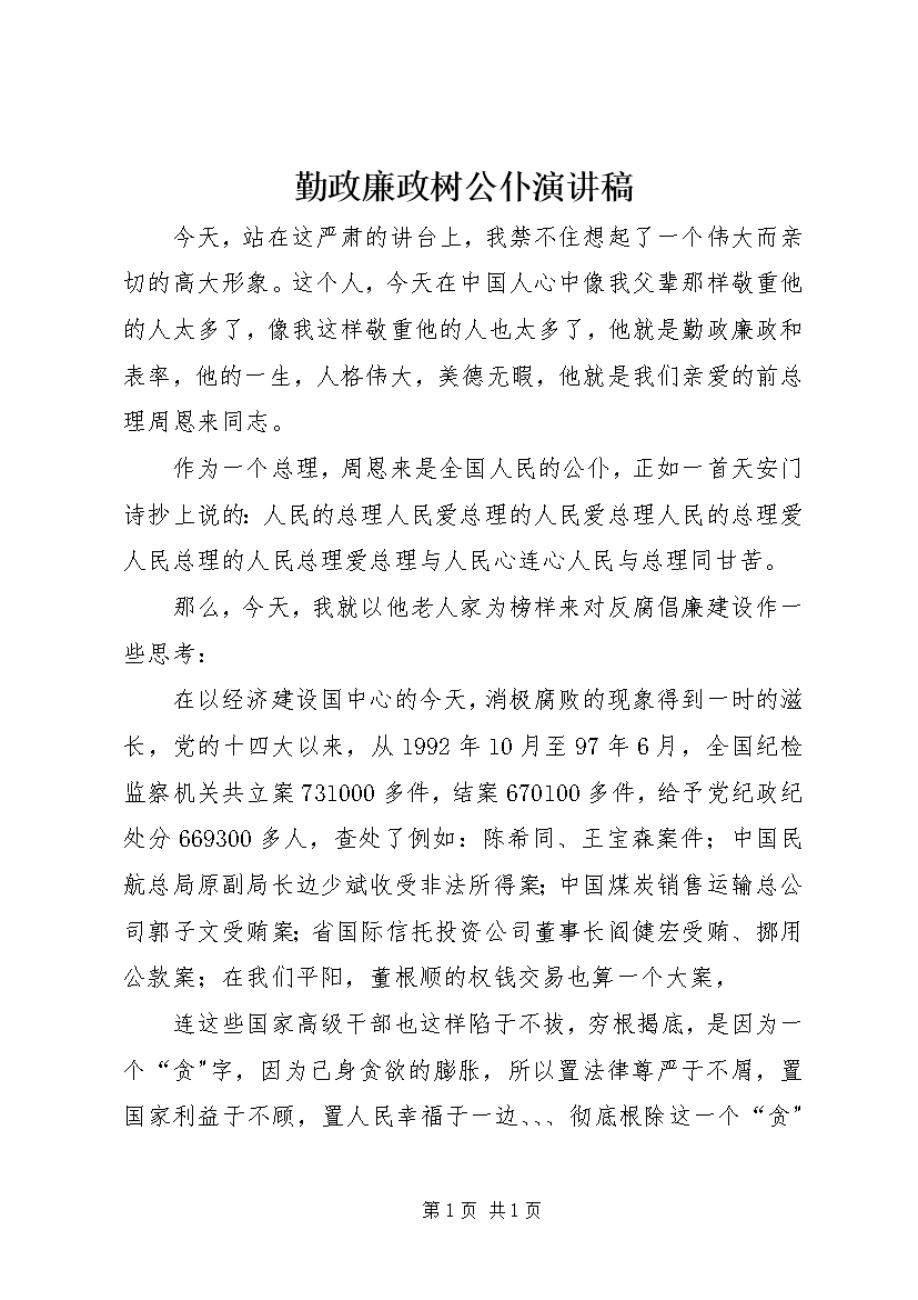 勤政廉政树公仆演讲稿 (4)
