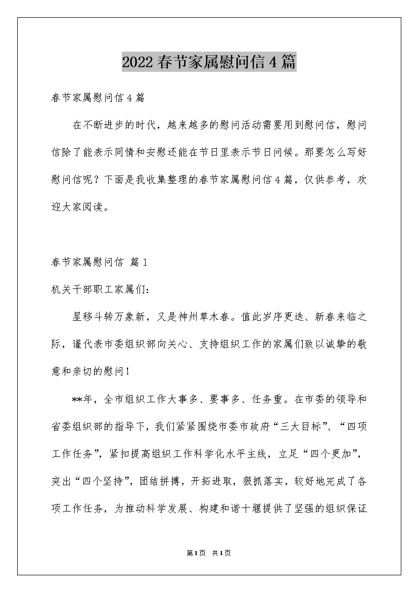2022春节家属慰问信4篇