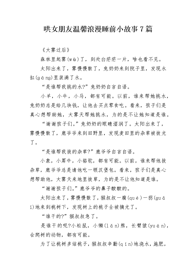 哄女朋友温馨浪漫睡前小故事7篇