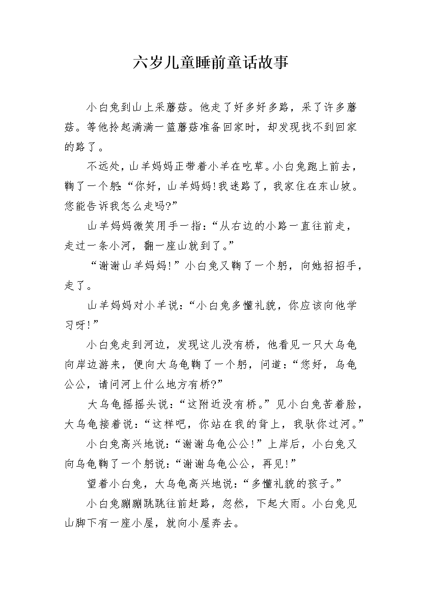 六岁儿童睡前童话故事