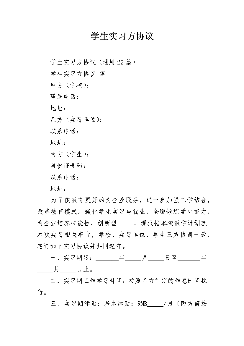 学生实习方协议