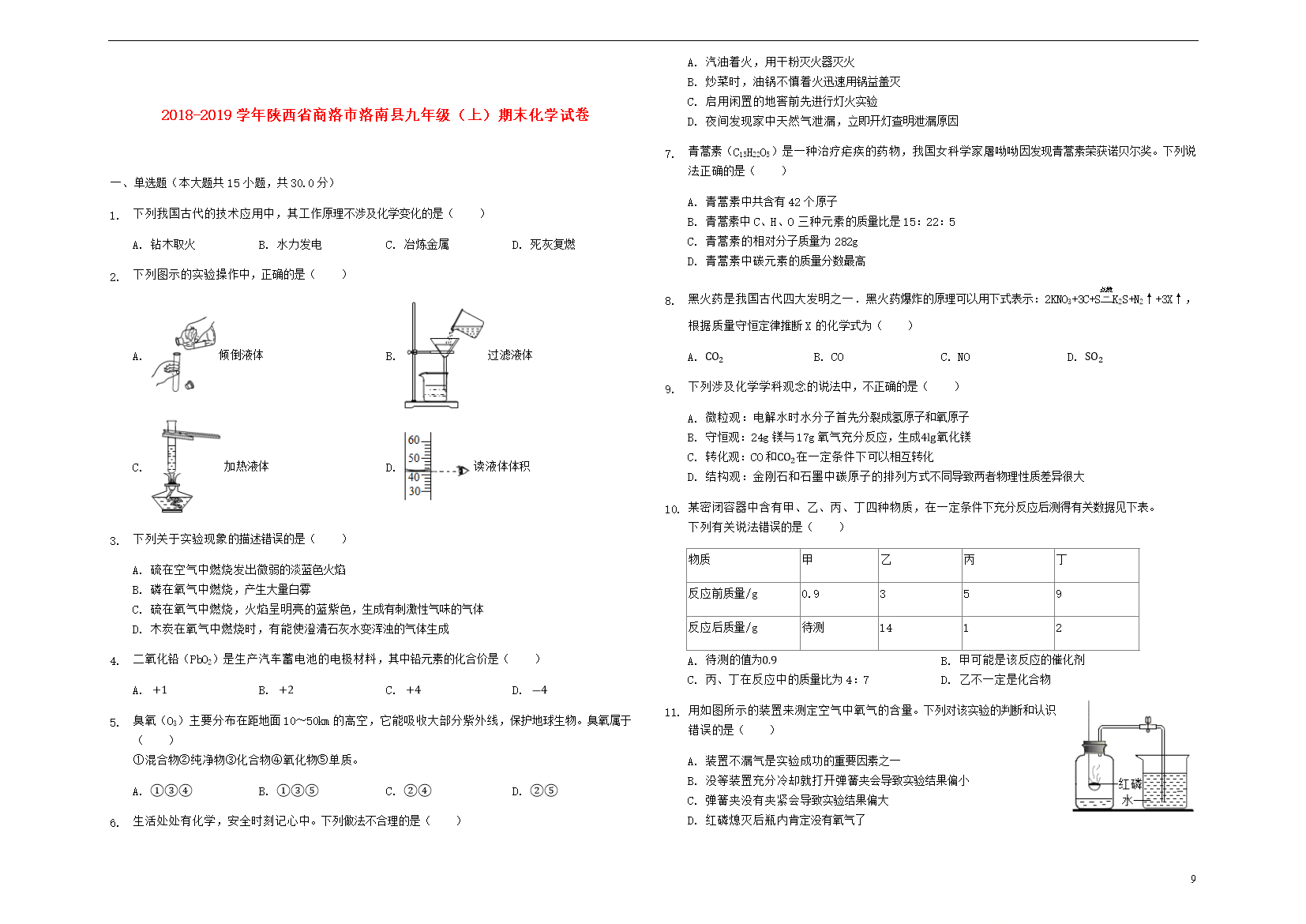 试题-陕西-2019_陕西省商洛市洛南县2018-2019学年九年级化学上学期期末试卷(含解析)