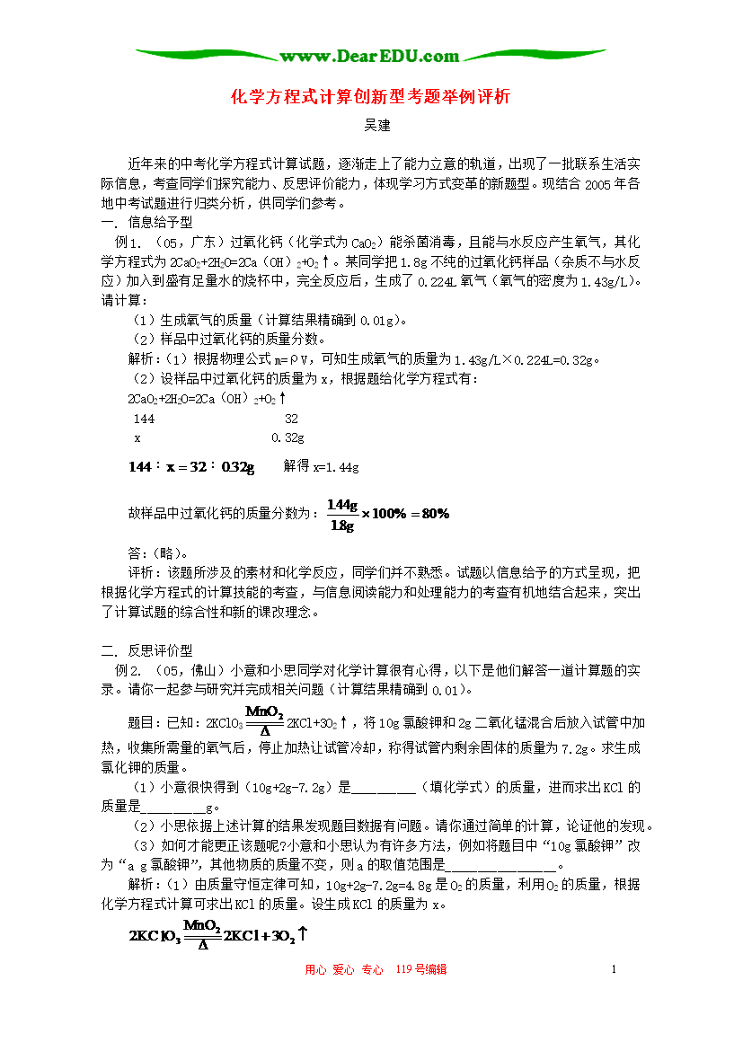 试题-全国-2006_化学方程式计算创新型考题举例评析