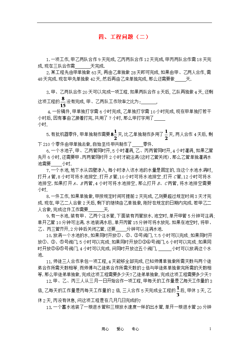试题-全国-2011_六年级奥林匹克数学讲义四 工程问题(二)