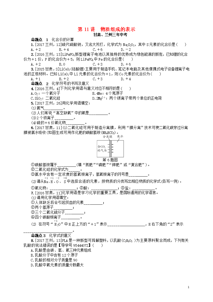 试题-全国-2018_2018届中考化学复习 第11讲 物质组成的表示练习