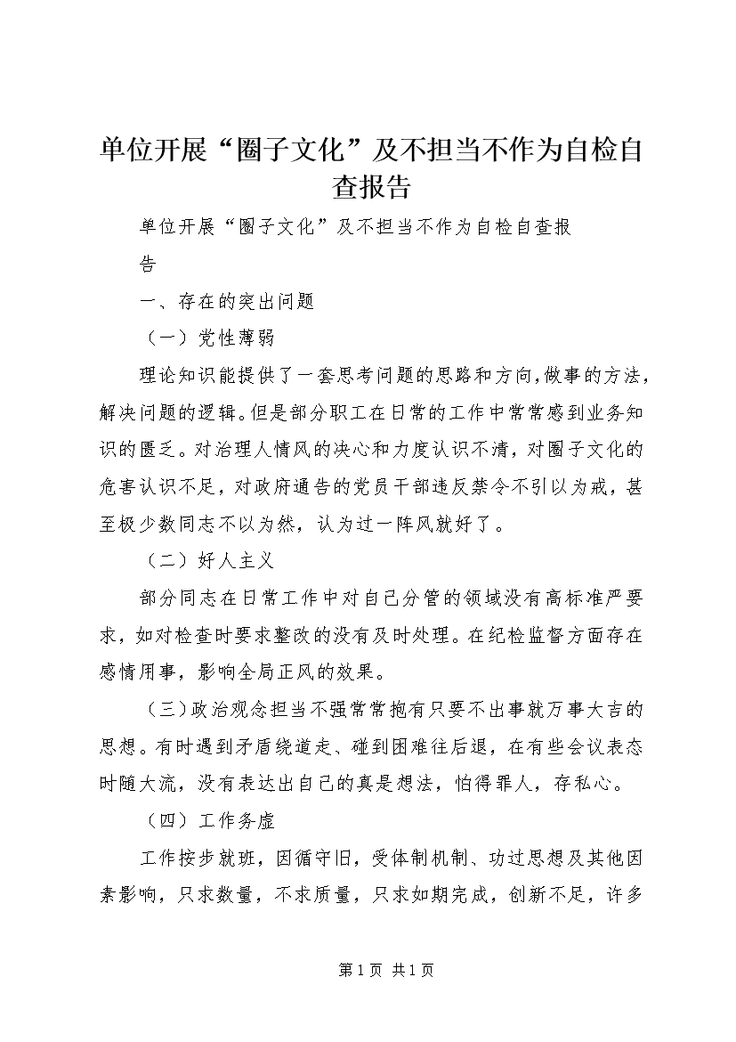 单位开展“圈子文化”及不担当不作为自检自查报告 (3)