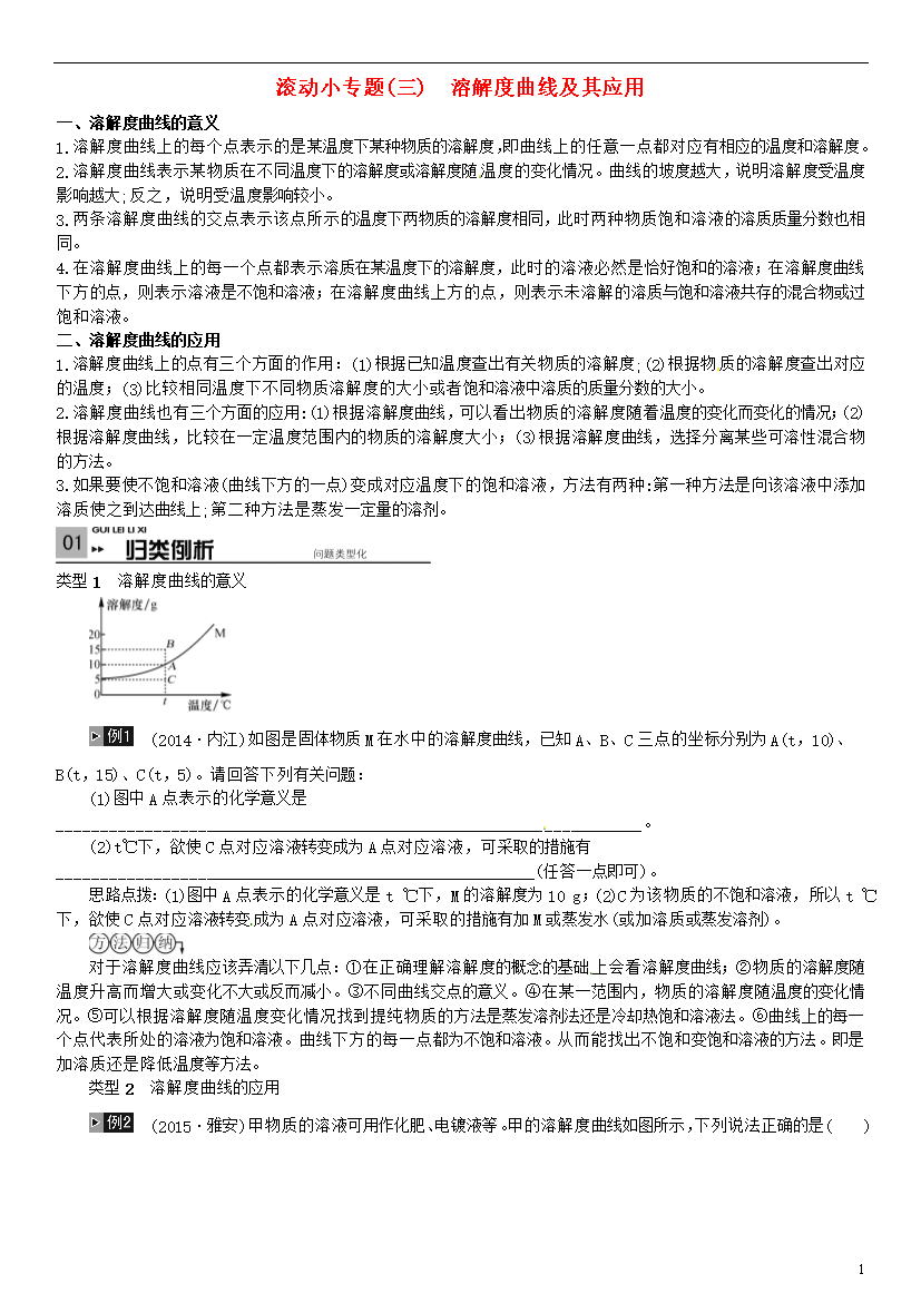 试题-全国-2015_火线100天(四川专版)2016中考化学 第一单元 身边的化学物质 滚动小专题(三)溶解度曲线及其应用复习