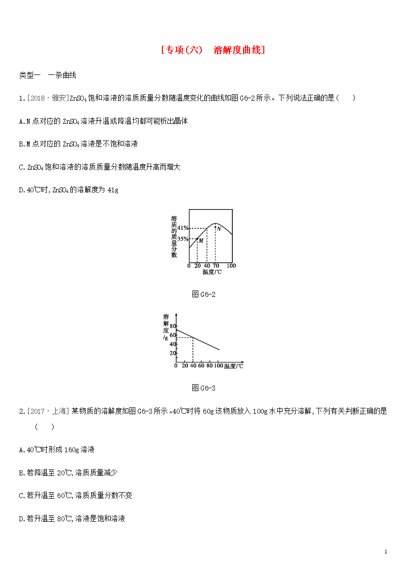 试题-河北-2019_河北省2019年中考化学复习 第一篇 基础过关篇 专项(六)溶解度曲线练习
